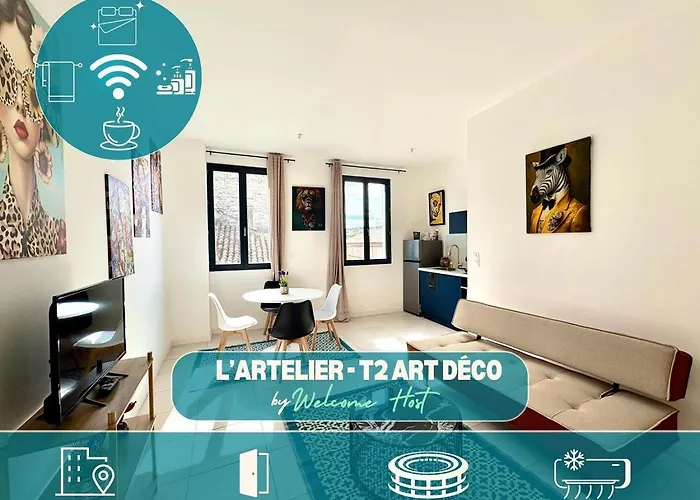 A 60 m^2-es L'Artelier - T2 Chic Au Coeur De La Ville Nîmes apartman kényelmes közelségben van olyan városi látnivalókhoz, mint az alig 400 méter távolságra található Marche Jean Jaures.